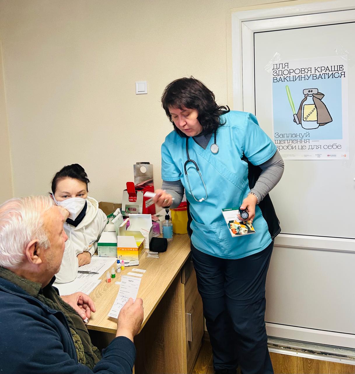 Мешканці мали можливість безпосередньо за місцем перебування отримати консультацію лікаря-терапевта, виміряти артеріальний тиск, пройти електрокардіографічне дослідження серця, визначити рівень глюкози в крові, а також вакцинуватись проти дифтерії та правцю і коронавірусної хвороби COVID-19.