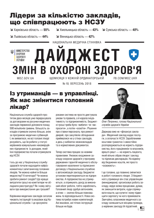 Дайджест змін в охороні здоров’я 10 Опублікував(ла) med1 , 12 Вересня 2018 року. Опубліковано в Реформа МОЗ. « Назад Вперед »